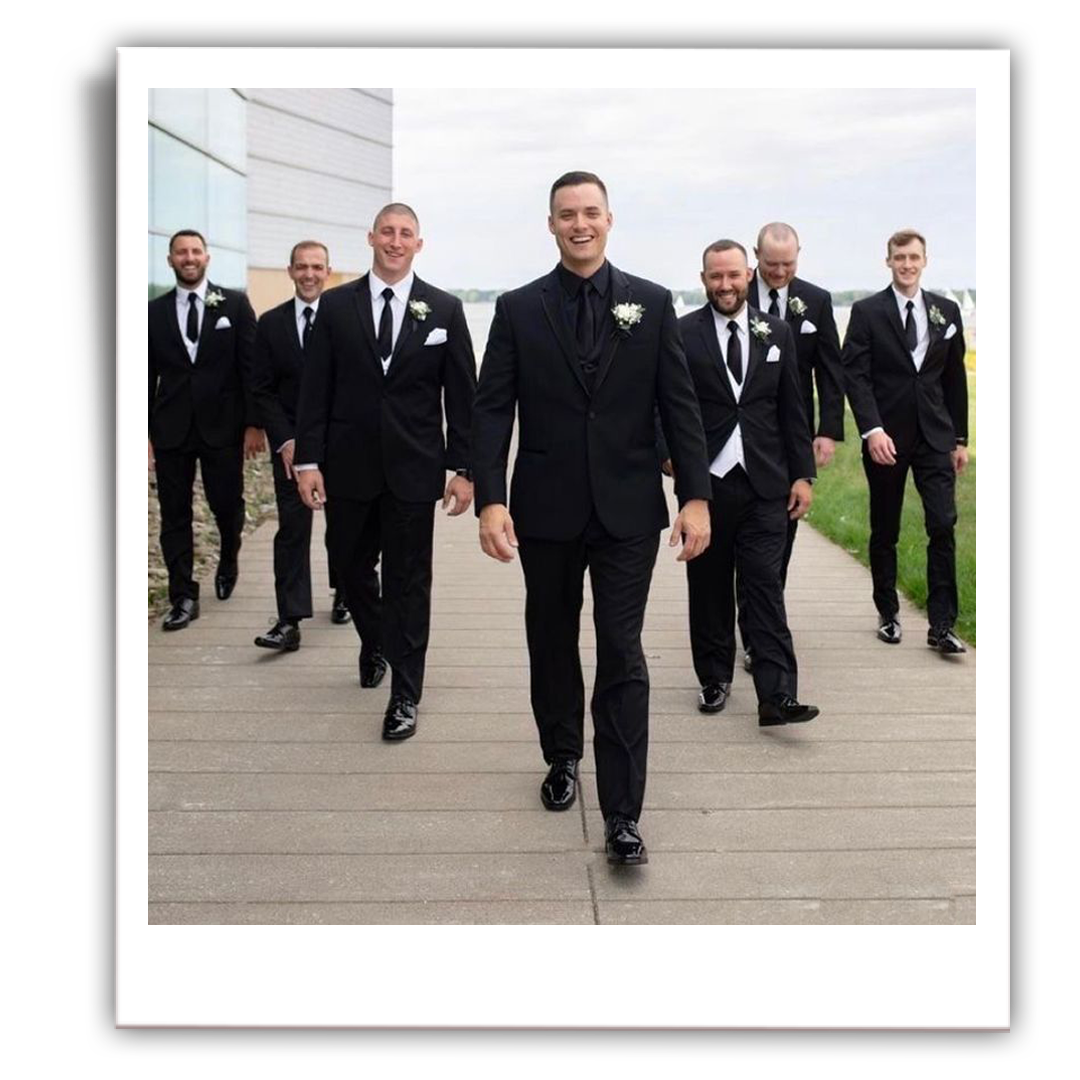 костюм и белая/черная рубашка (либо поло/футболка)